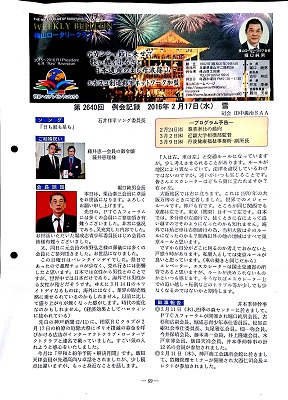 米山奨学生シャフルル君、PHD協会の井上理子様、そして本日卓話をお世話になる近畿大学相撲部監督 伊藤勝人様をお迎えしています。又地区から増強・拡大委員会委員に小嶋一郎会員、青少年奉仕委員会IA小委員会委員に古杉和広会員、 続きを読む…